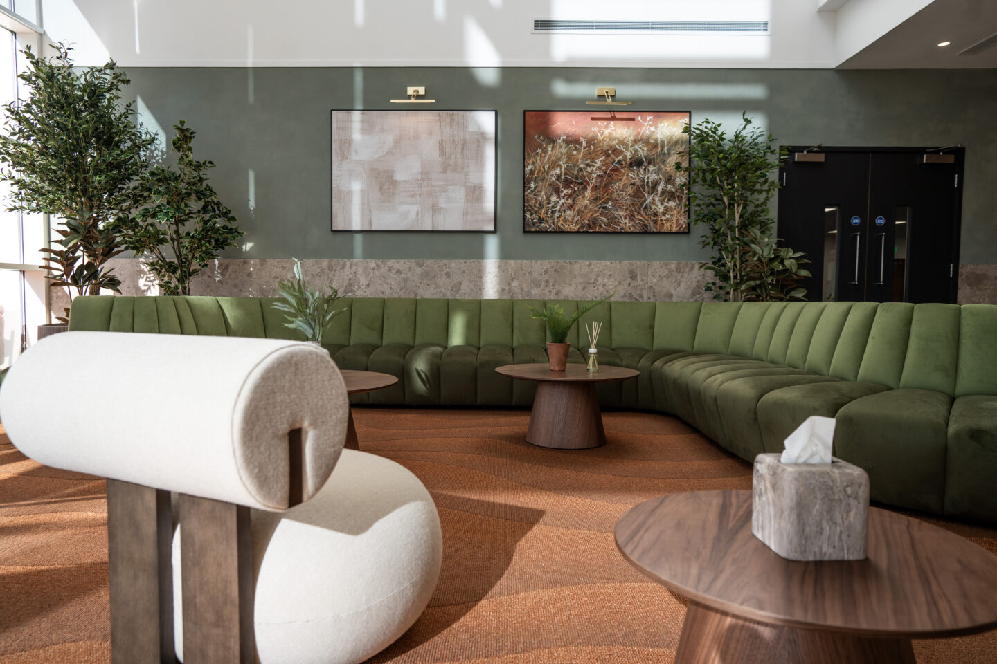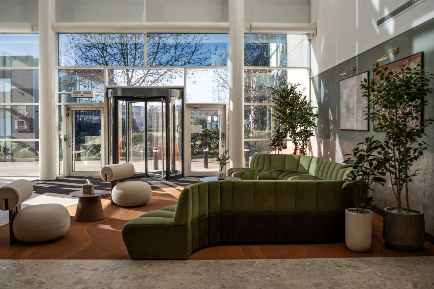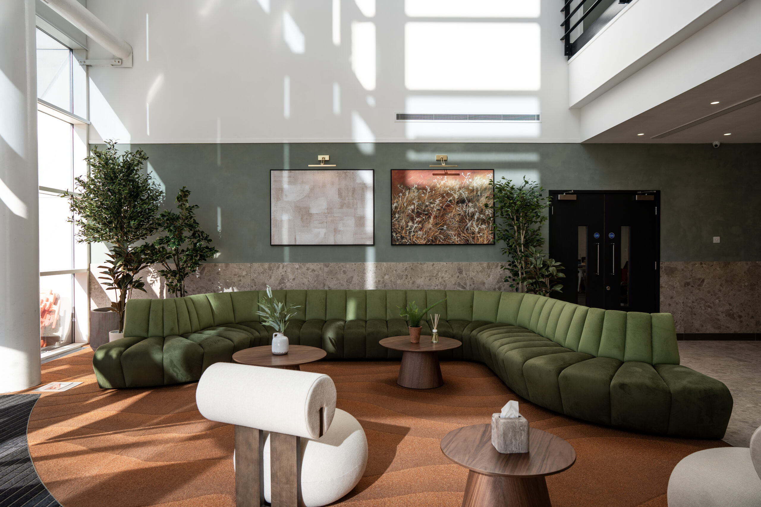 Through early consultation, a critical issue was identified: temperature control. The large atrium and fully glazed façade created an uncomfortable environment. Cold in winter and excessively warm in summer, it was essential to address this to deliver a space that was visually appealing, comfortable and practical for daily use.