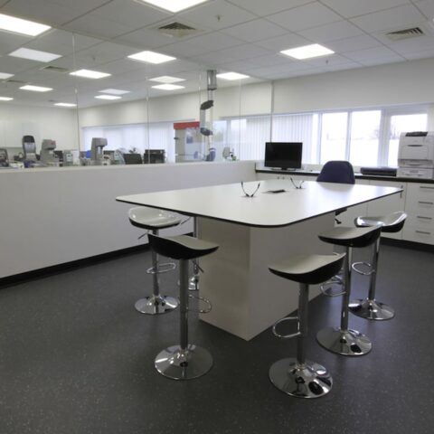 By way of example we needed to include collaboration space within the laboratory where the laboratory technicians could do their write-ups and undertake collaborative working. Previously they had used office space that was away from the laboratory, the new approach introduced a collaborative area within the lab but outside the hazardous controlled zone of the actual laboratory.