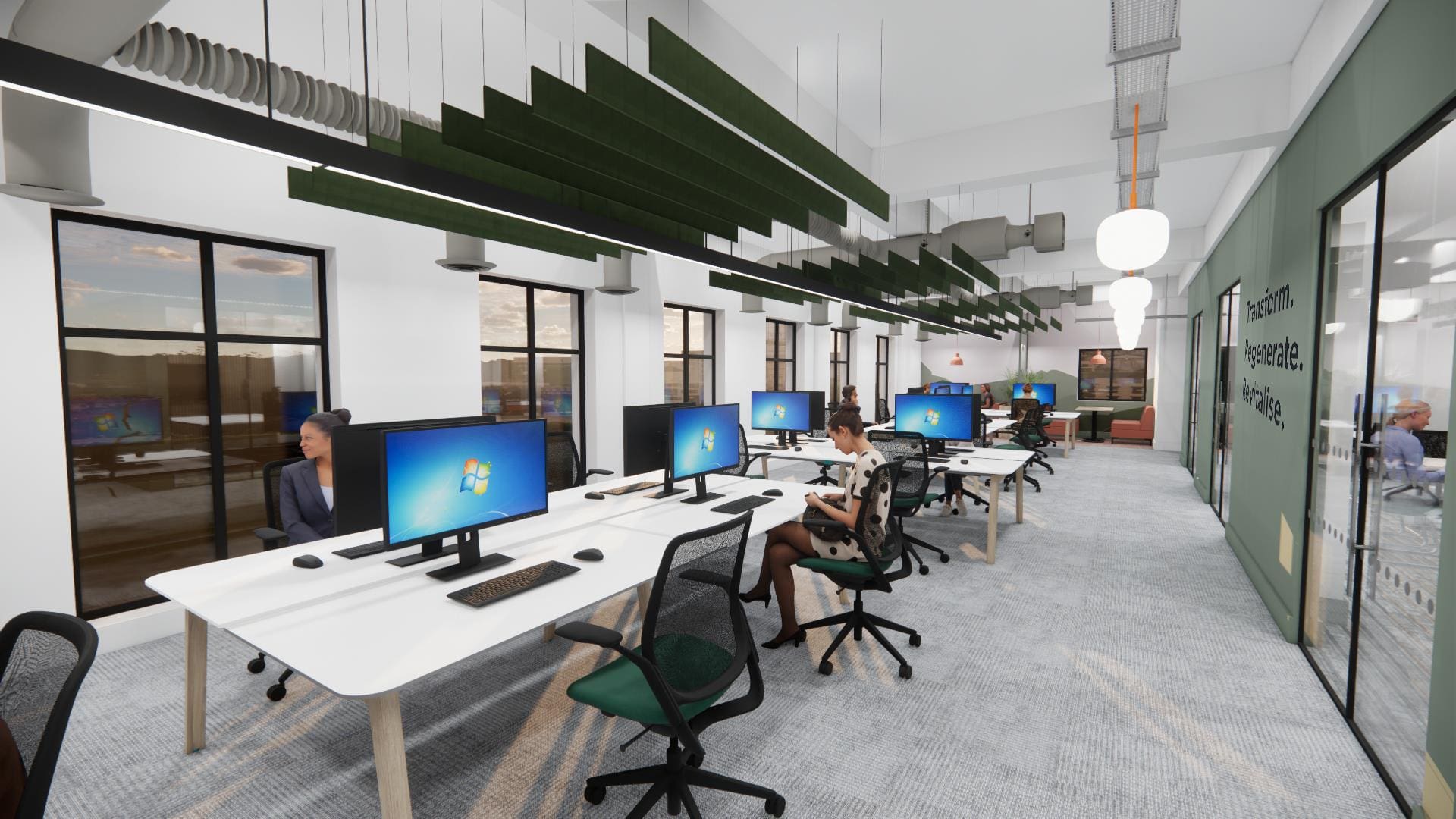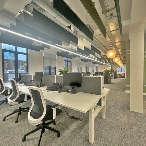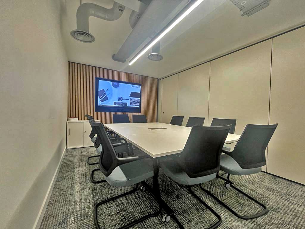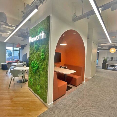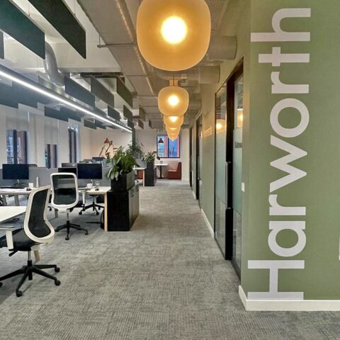 Harworth Northwest wanted to adopt a more agile work style, with clearly defined work areas that included 22 open plan workstations, a breakout area, a choice of collaboration zones, areas for quiet focussed work and three flexible 10-person meeting rooms which would open to create a seminar space to hold 30 people.