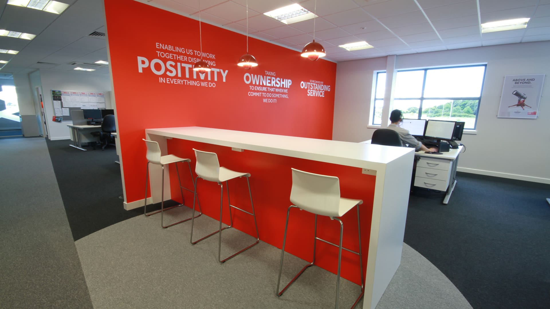 Having outgrown their existing office and warehouse space Horizon Platforms had decided to relocate to a new purpose-built facility. Part of the interior had been fitted out already by the main contractor, so the project team were tasked with designing and working within the confines of the new space.