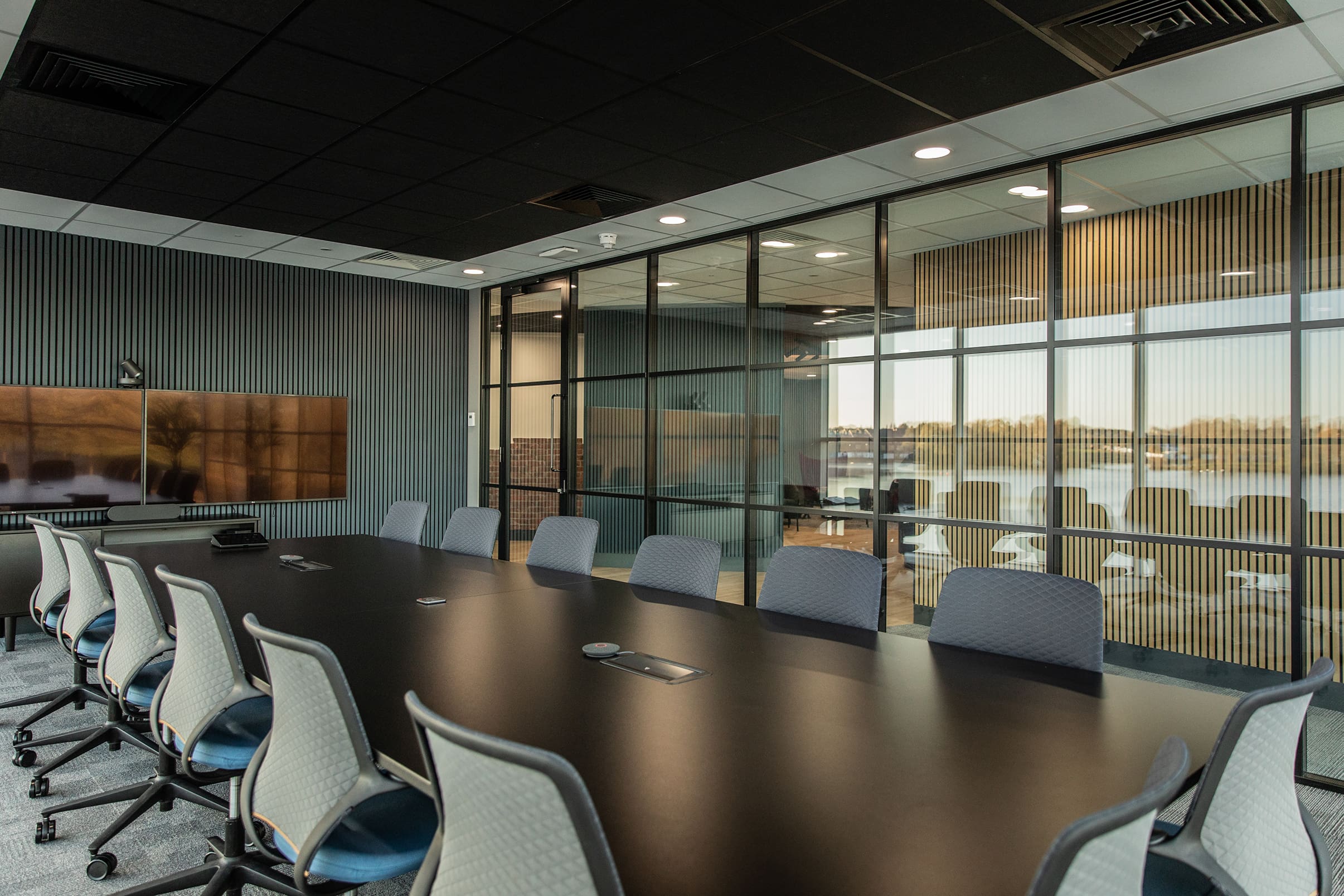 Sound transfer was an issue for Keepmoat, with room-to-room noise pollution a common complaint due to the cellular nature of offices and meeting rooms. Overall, the space was a little tired and dated and the brand was keen to update this to reflect their own passion for modern, stylish design within the homes they build.