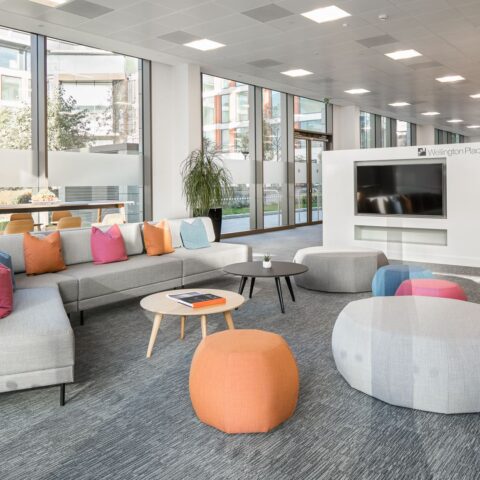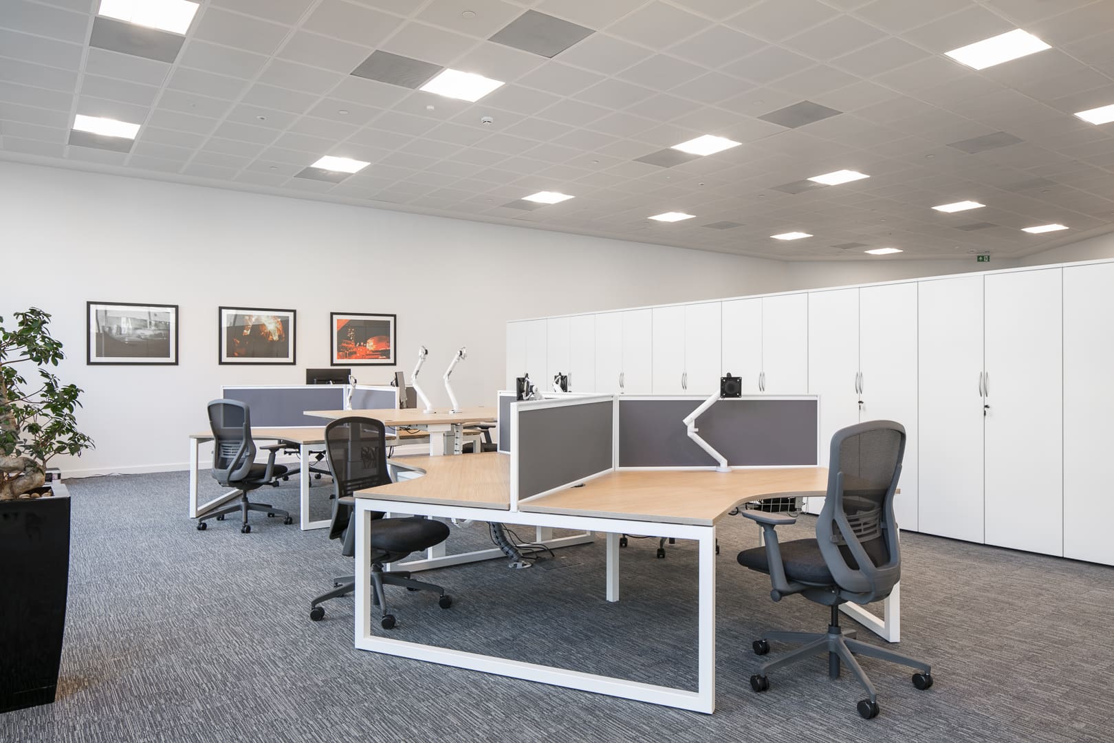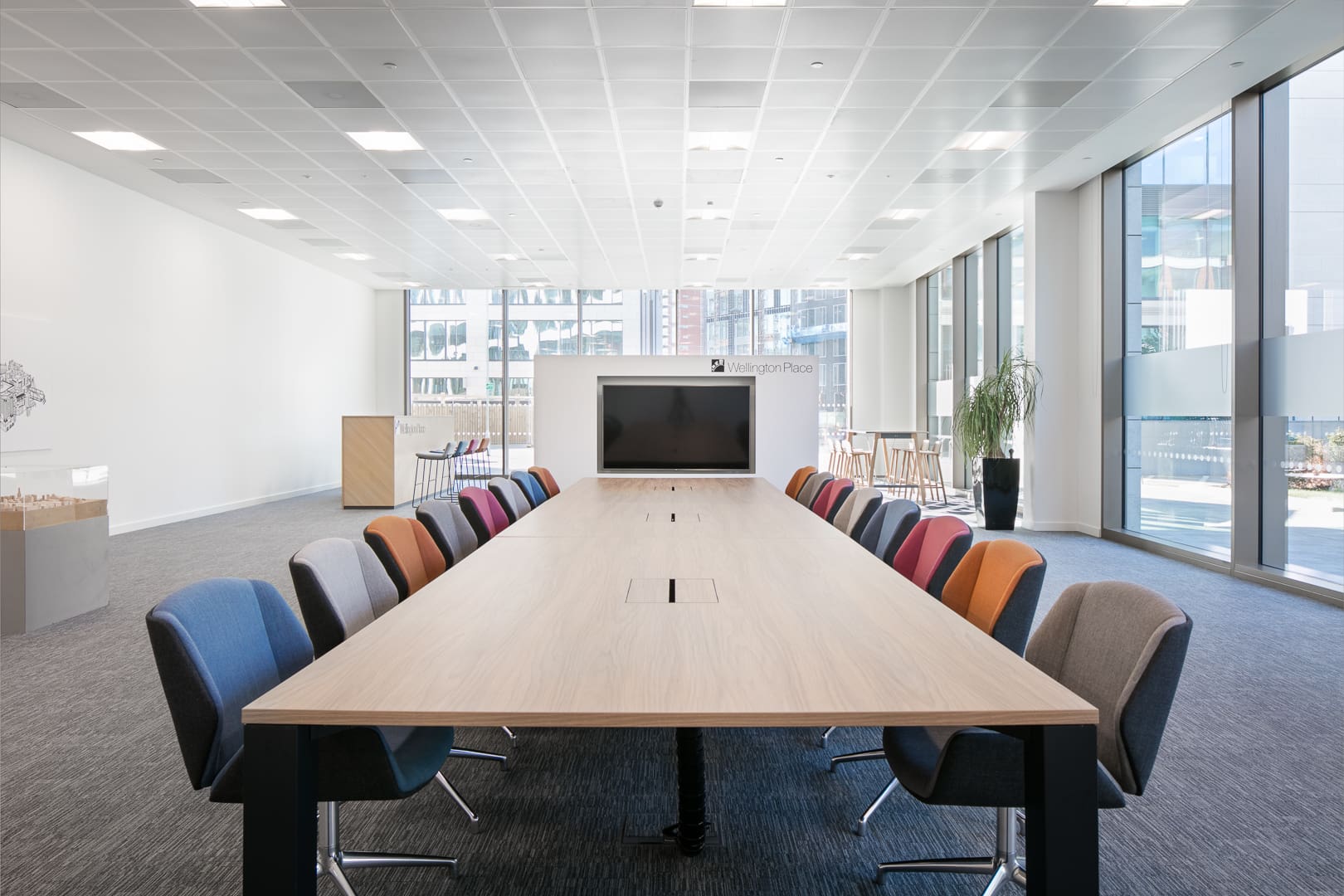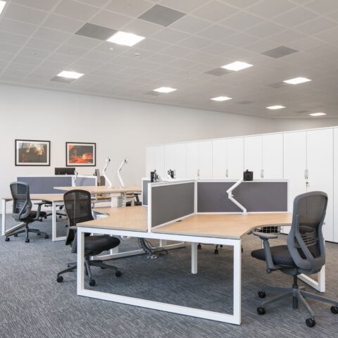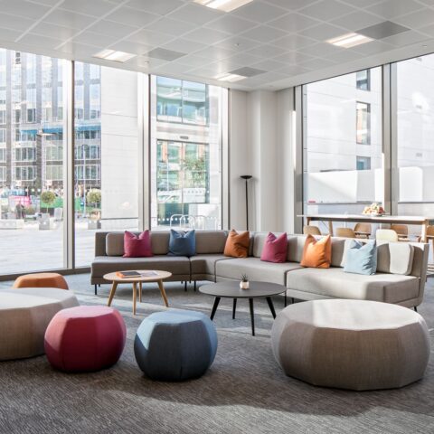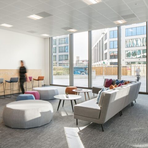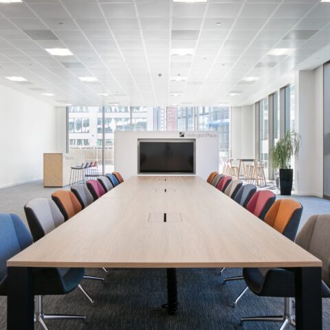 Working Zone – It was necessary for this area to be tucked away but without fixed partition walls, to give the MEPC team privacy while the space was being used by other visitors. A workstation pod was created, with a choice of desk height, along with good quality ergonomic task chairs and ample storage.