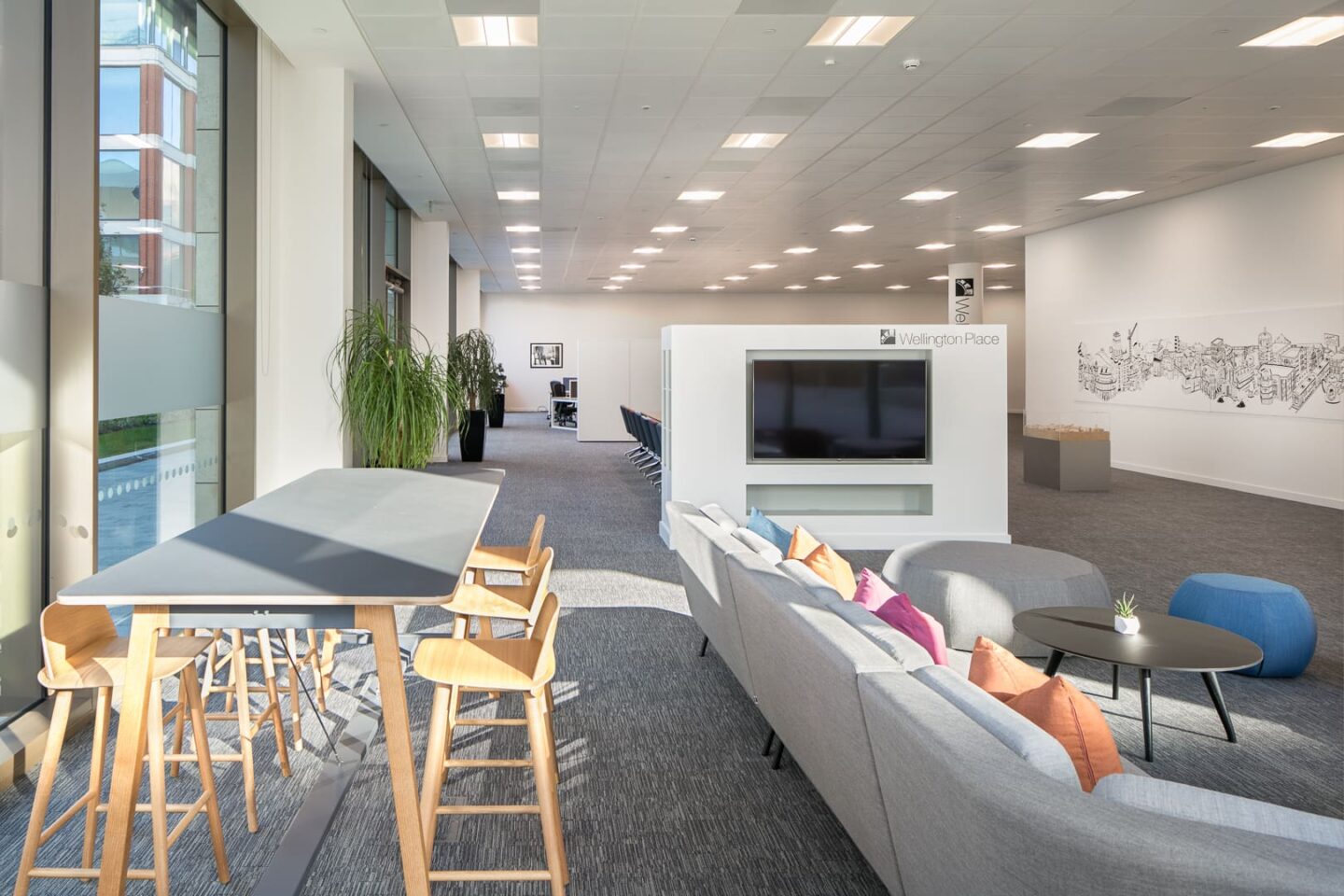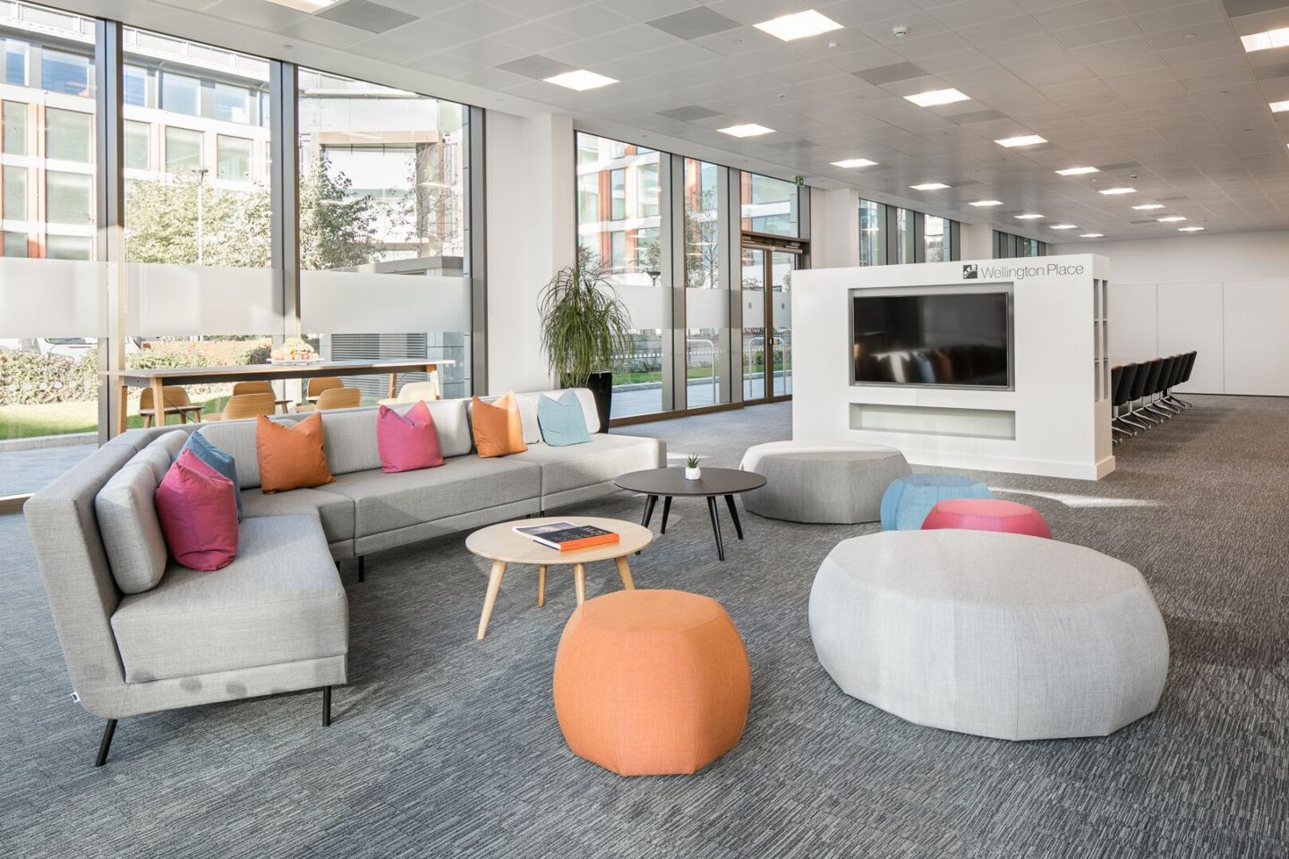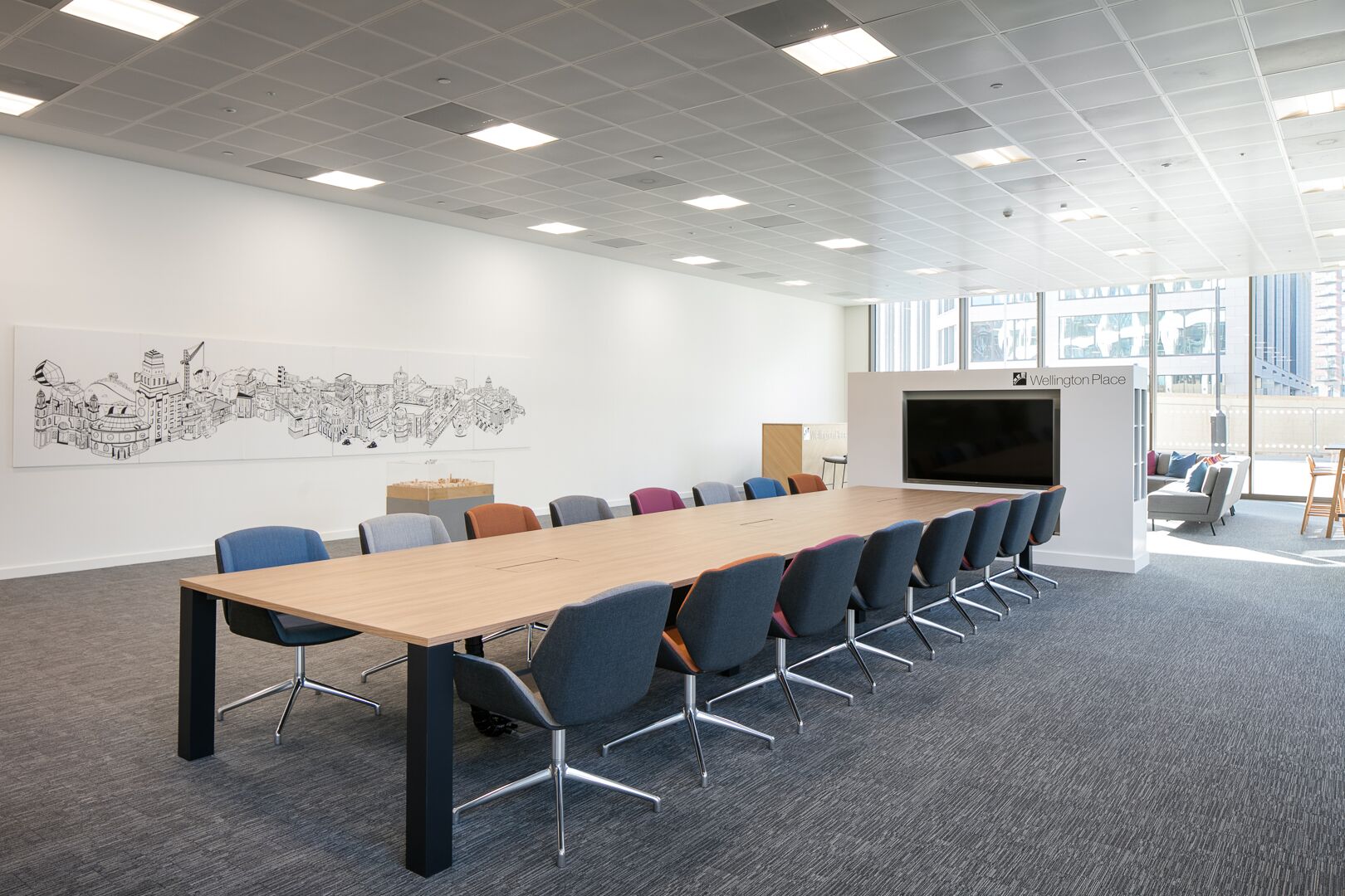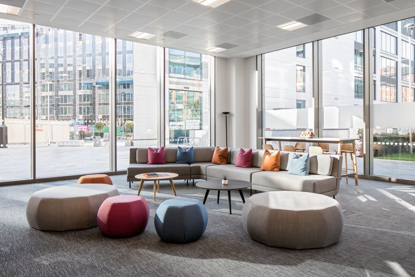Working Zone – It was necessary for this area to be tucked away but without fixed partition walls, to give the MEPC team privacy while the space was being used by other visitors. A workstation pod was created, with a choice of desk height, along with good quality ergonomic task chairs and ample storage.