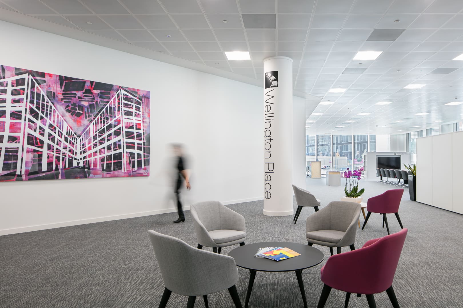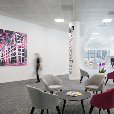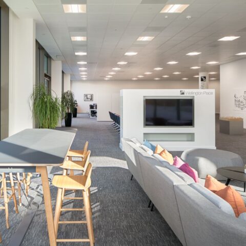 Meet and greet area – Soft seating and feature lighting that was both welcoming and stylish were selected, together with ideas and products to clearly display branding and literature.