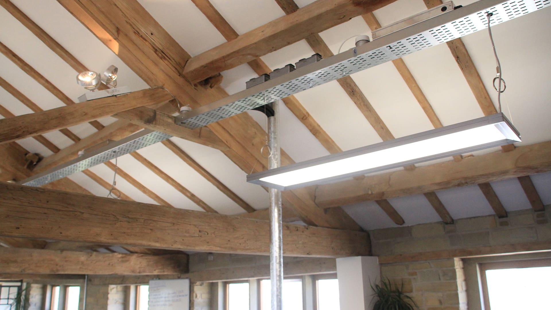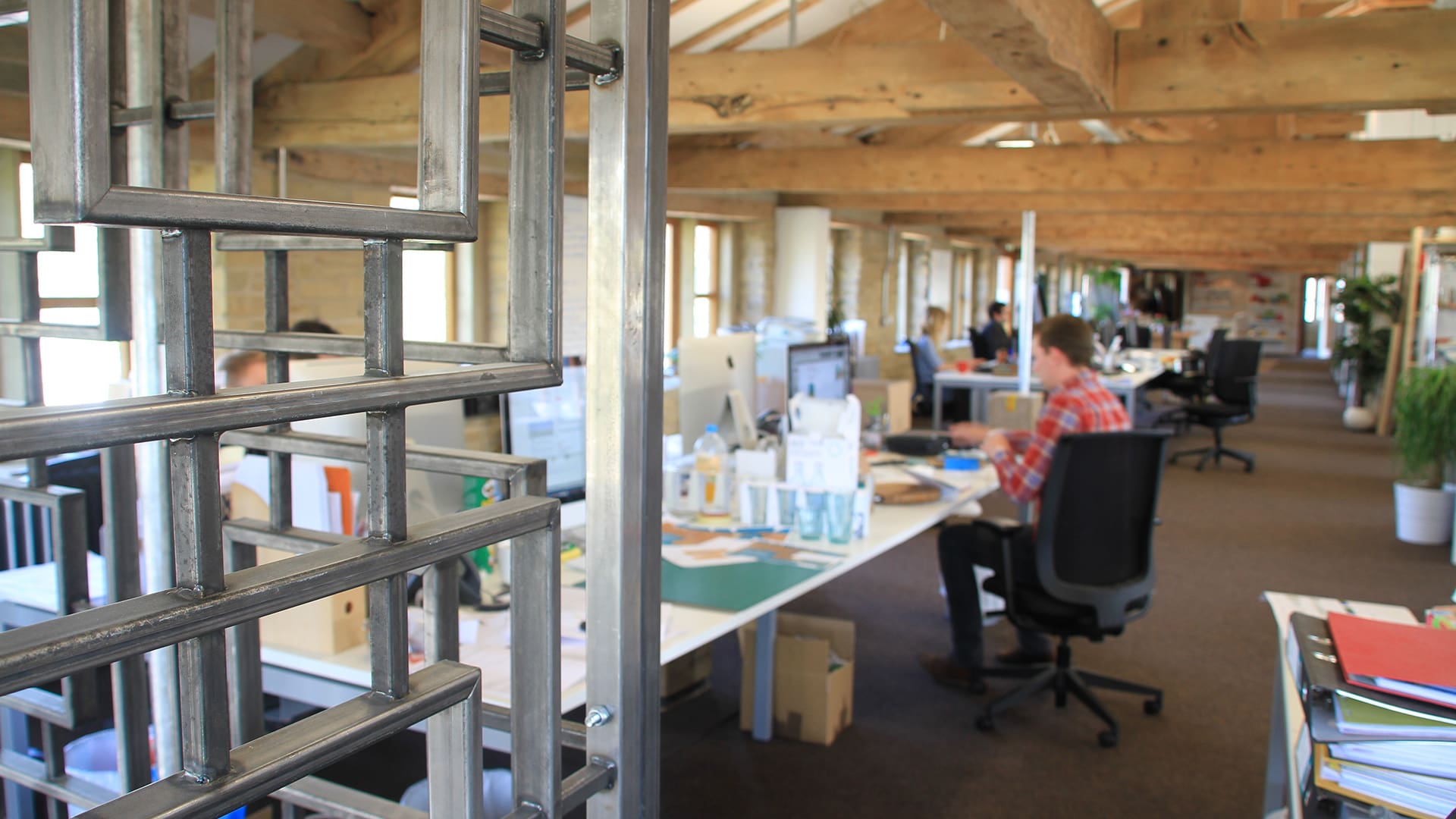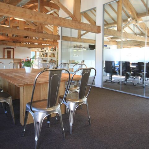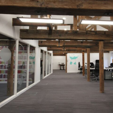 As the building was already under refurbishment, Merison required a contractor that would work closely with the landlord and his independent contractors to co-ordinate their fit-out works. The building had exposed wooden beams at 2m high which proved problematic when planning cellular spaces. Merrison was also concerned that the ceilings would appear low and oppressive. Maintaining an industrial theme was a key priority of the client along with emphasising natural light throughout the space.