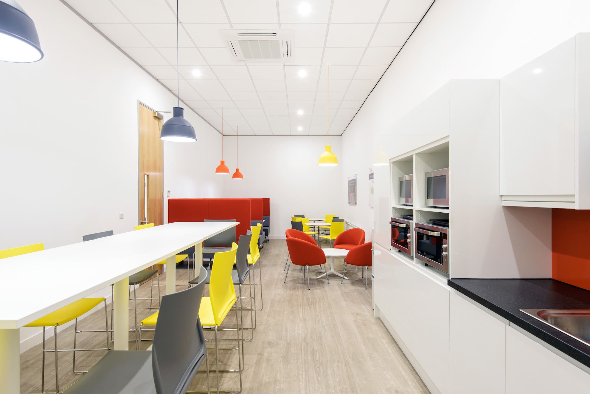 Our team worked closely with Knight Frank Newcastle building surveying team and Taylor Wimpey to develop their vision by sharing our knowledge on best practice and product specification. This, combined with site visits to view samples of product helped in; refining the design layout, clarifying the desired look and feel for the space whilst challenging their aspirations, reduced cost and made the best use of the open plan space.