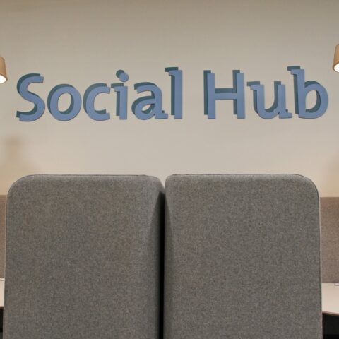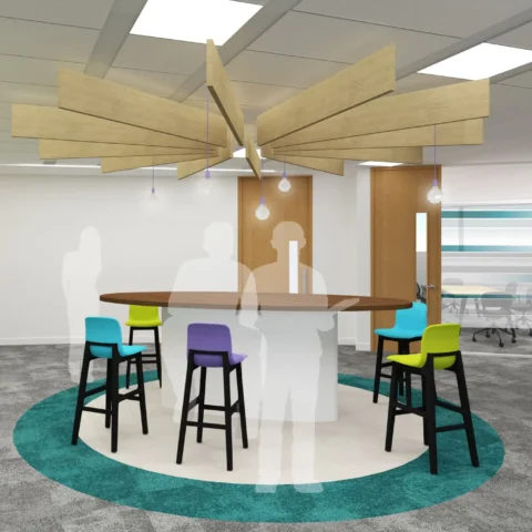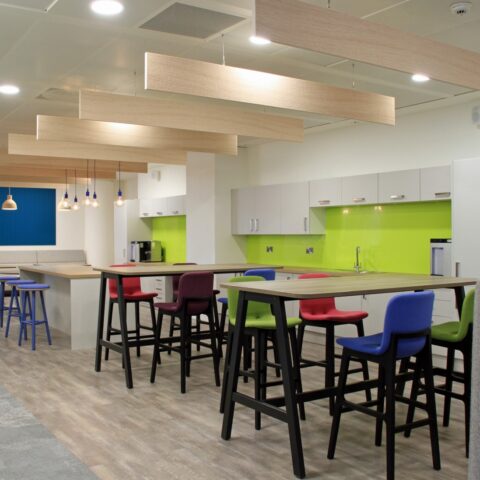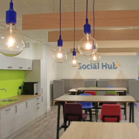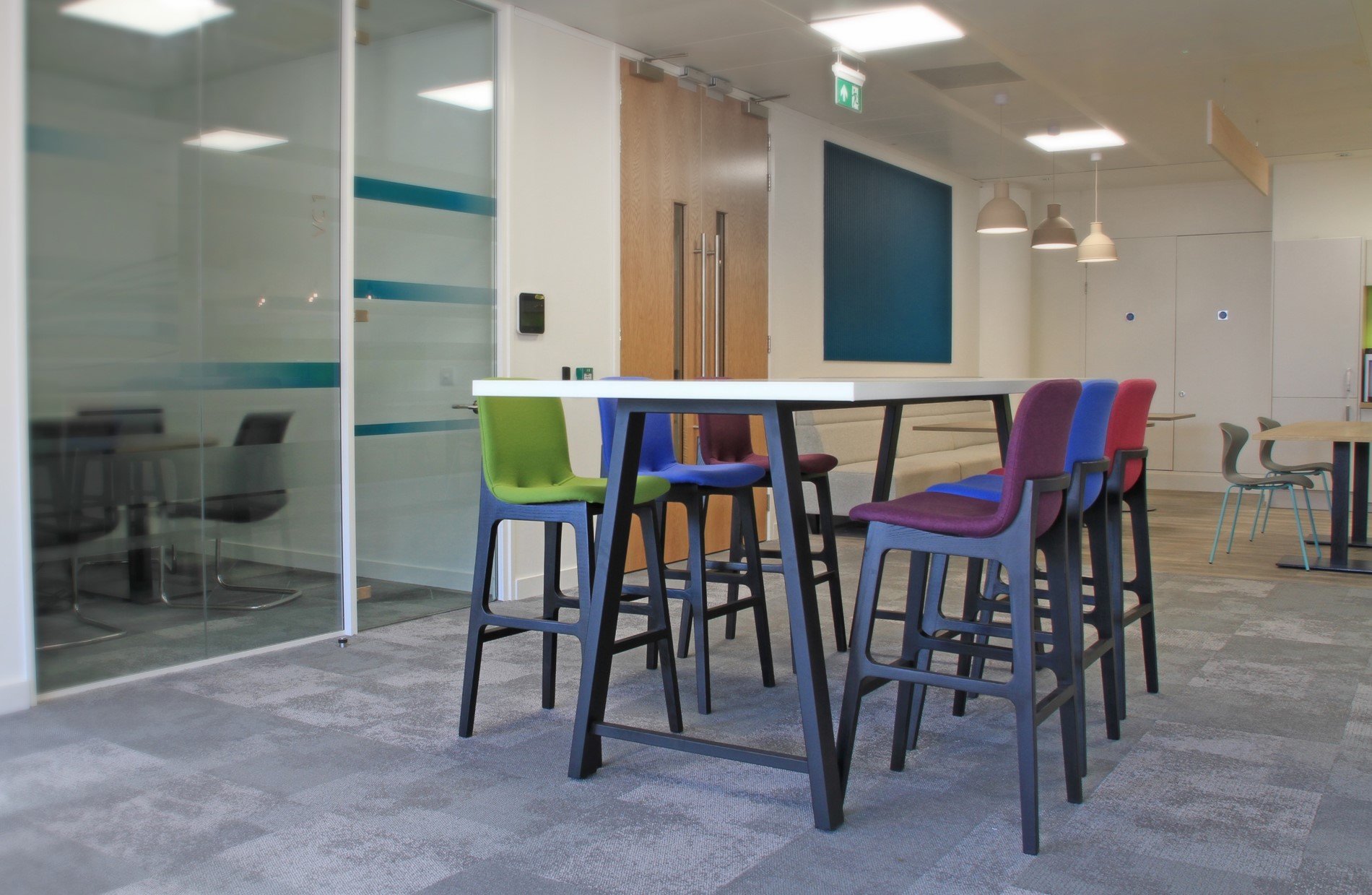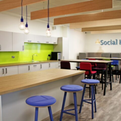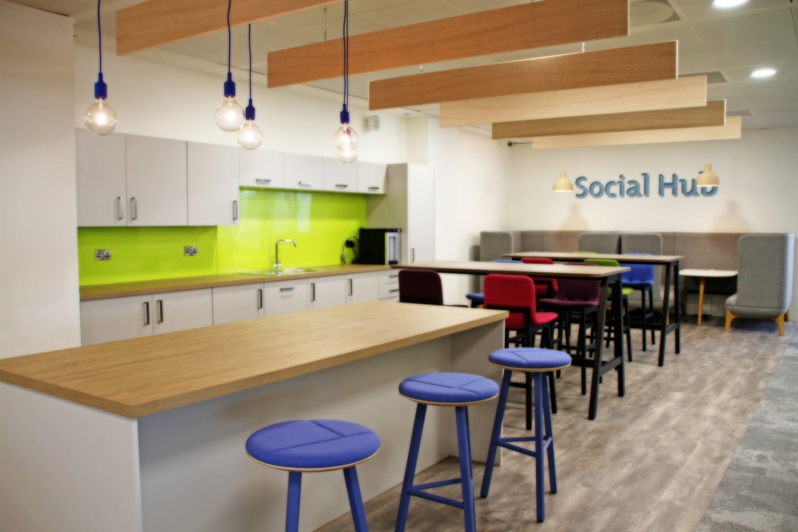 We were tasked with producing a modern, refreshed scheme that mirrored other Weightmans workspaces around the country but stuck to a pre-indicated layout and very clear brand guidelines. The new workspace consists of agile workstations – including standing desks, a client suite, quiet rooms, meeting rooms, catering facilities and a social hub.