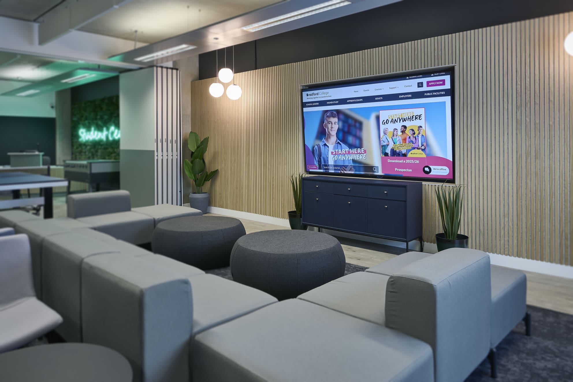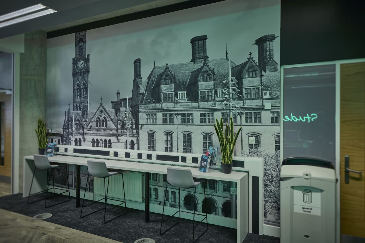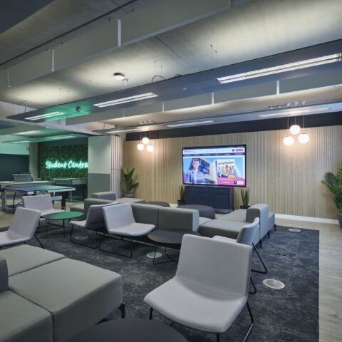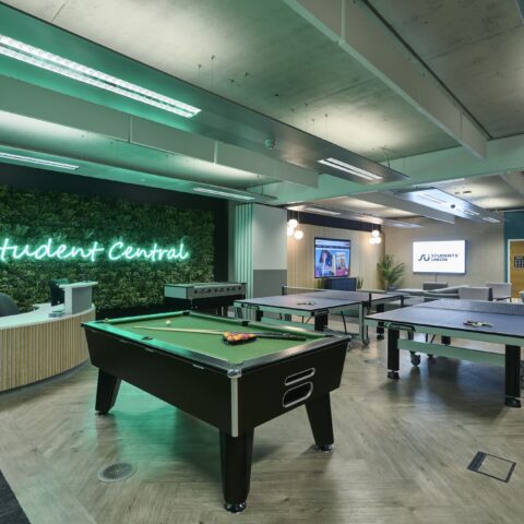 Branded ‘Student Central’, the facility was to be a welcoming environment, somewhere students could go for support, wellbeing and recreation. The project was procured through a traditional tender process, and Ben Johnson Interiors was successfully awarded principal contractor role, procured through a JCT Minor works contract.