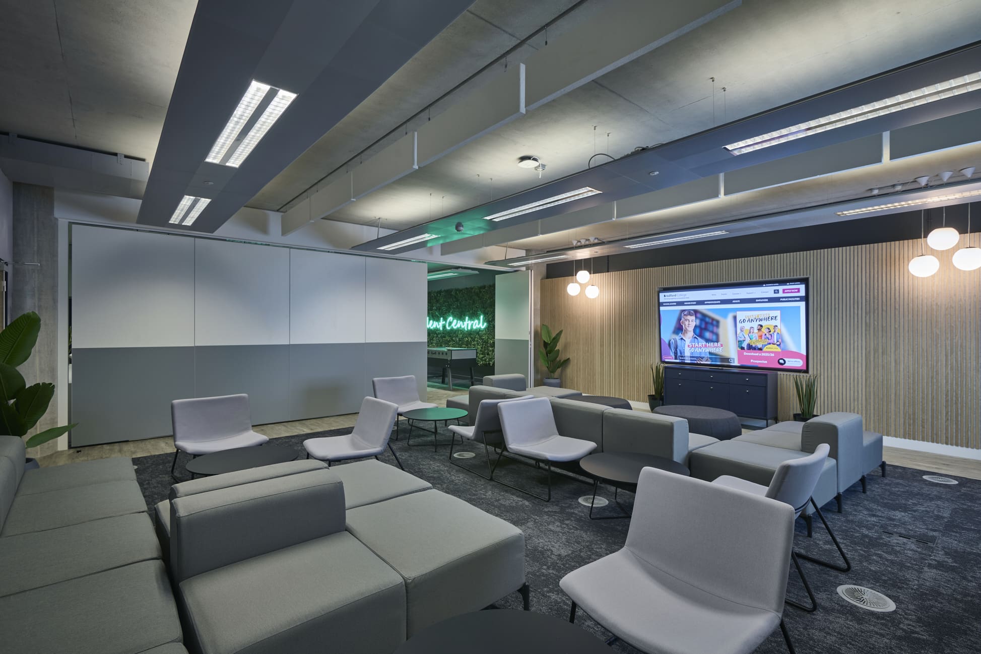 Bradford College had appointed Bowman Riley Architects to help them refurbish a dated, underutilised flexible meeting facility into a modern multipurpose breakout space for students.